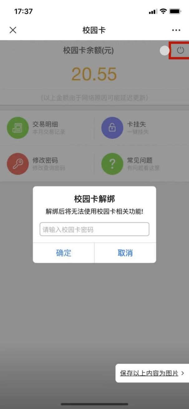 (五)绑定操作只需进行一次,如需解绑,请通过完美校园小程序 我的——校园卡——校园卡解绑,输入校园卡密码,完成解绑。